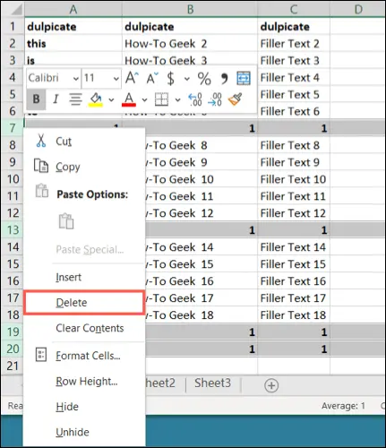هنگام حذف ردیف های تکراری در اکسل چه اتفاقی می افتد؟