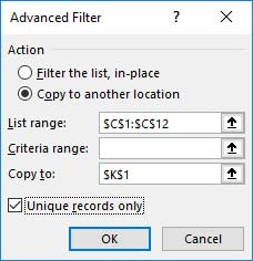 روش دوم: جدا سازی داده های یکتا با Advanced Filter